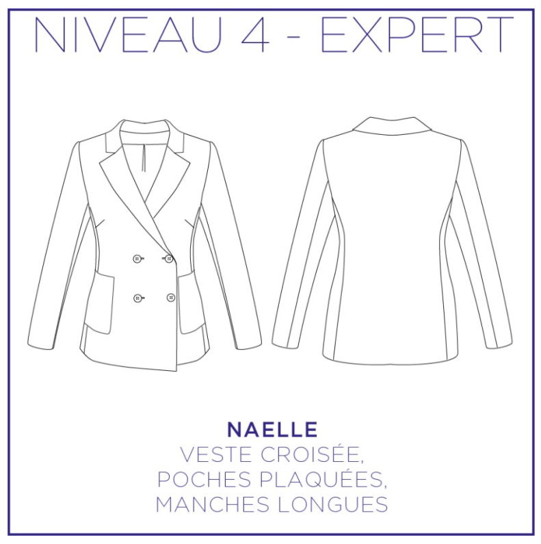 J’aime : sa coupe intemporel qui rend ce patron de veste utilisable pour toutes les occasions.